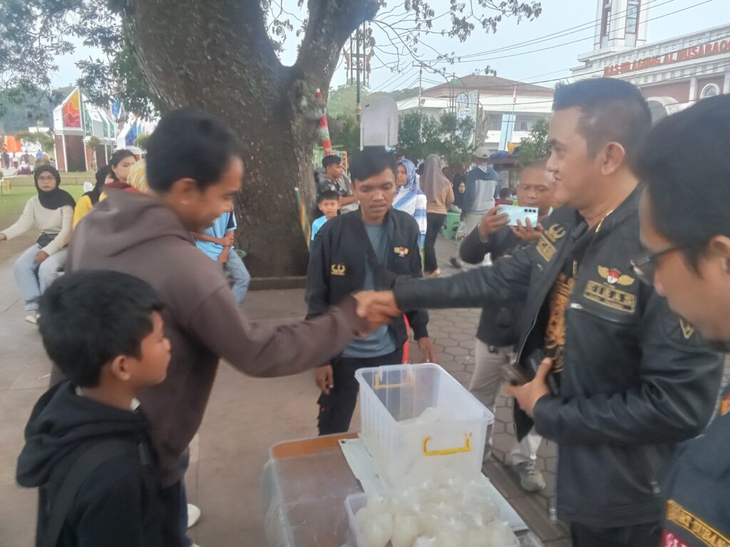 Berpusat di Alun -alun Subang, organisasi yang terkenal dengan motto ‘Cinta Damai’ memborong produk UMKM sekitar untuk dibagikan kepada masyarakat.