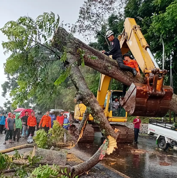 “Pihak BPBD Subang menurunkan alat berat ekskavator untuk mengevakuasi pohon Tumbang yang menimpa mobil tersebut,” kata Udin, Rabu, 22 Oktober 2025