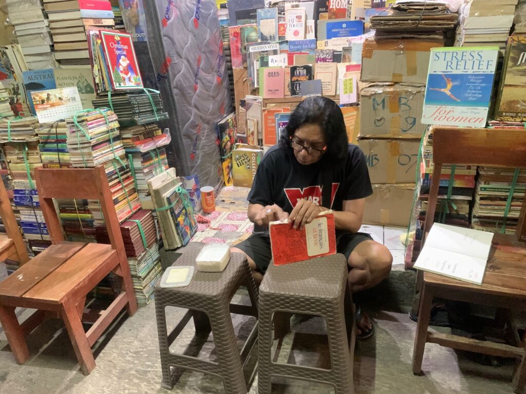 Sabtu siang (12/10/2025) Lelaki berambut panjang dengan kacamata yang dikenakannya tampak asik merestorasi sebuah buku impor yang dimilikinya. Di salah satu lorong grosir toko buku, Yanto perlahan mengelem bagian-bagian buku yang mulai terbuka.