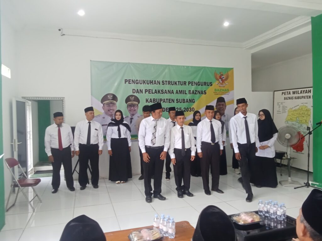 SUBANG – Badan Amil Zakat Nasional ( BAZNAS) Kabupaten Subang menggelar pengukuhan dan pelantikan kepada 13 staf yang diantaranya 4 Kepala Bagian ( Kabag ) dan 9 staf.